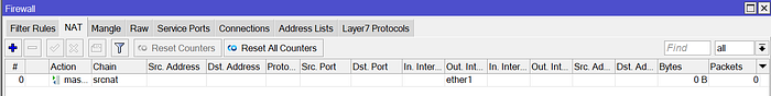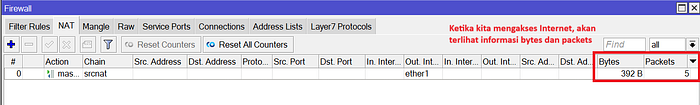 Untuk memberikan konektivitas internet kepada perangkat di jaringan lokal, kita membutuhkan konfigurasi Firewall NAT. Berikut cara konfigurasi-nya: